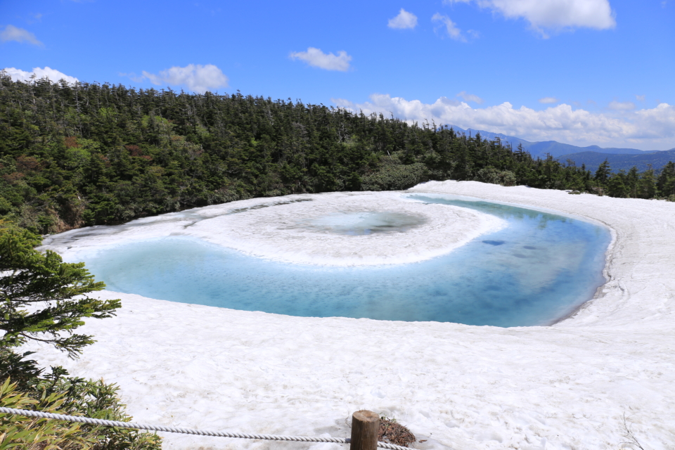 镜沼位于八幡平山顶散步道上。据说春季解冻后的镜沼就像龙眼一样,因此被称为 "八幡平龙眼",如果运气好的话,在 5 月中旬到 6 月中旬可以看到。