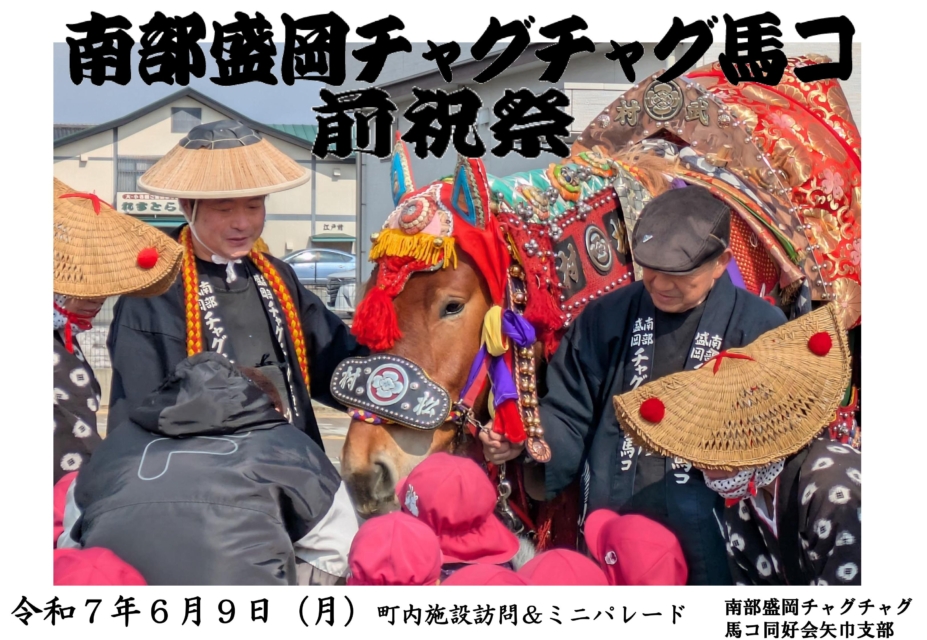 装束を着飾った馬コが矢巾町内の施設等を訪れます。普段目にすることの少ないきらびやかな馬コとの間近での触れ合いを楽しむことができるイベントです。