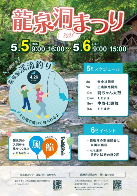 日本三大鍾乳洞のひとつ「龍泉洞」で行われる春のイベント。出店やキッチンカーが出店され、町内外のおいしいグルメが集まります。