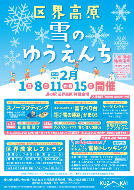 ※悪天候により中止となる場合もあります。道の駅 区界高原 (TEL.0193-77-2266)